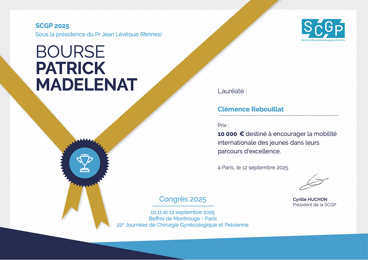 BOURSE DE MOBILITÉ PATRICK MADELENAT 1497 1058 Société de Chirurgie Gynécologique et Pelvienne - SCGP