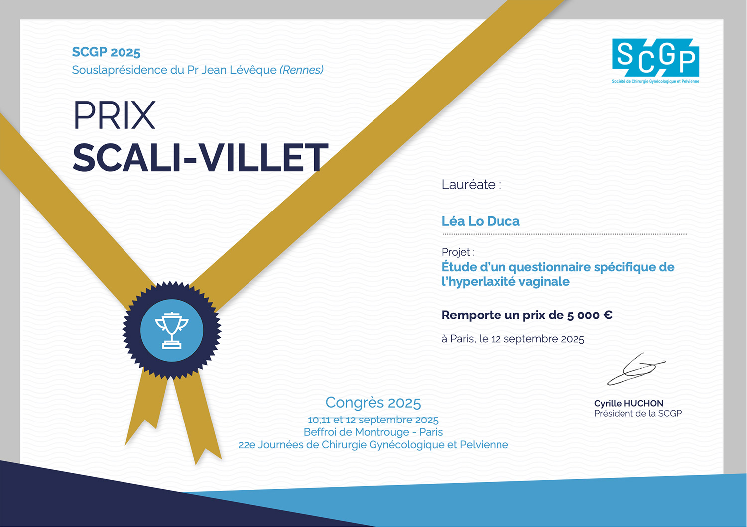 Décerné par la Société de Chirurgie Gynécologique & Pelvienne (SCGP)